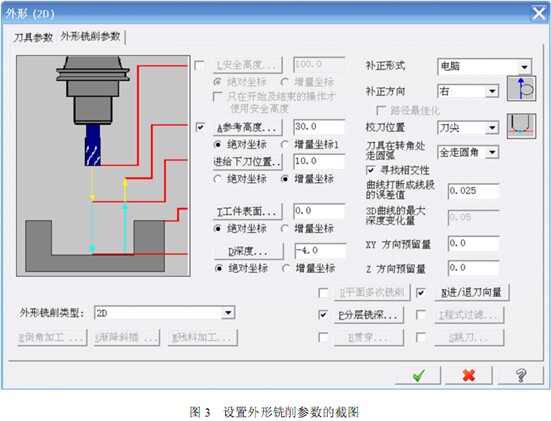 圖 4 是刀位軌跡的截圖. 生成刀位軌跡之后 ,進行后置處理 ,設置好相應的參數 ,通過加工軌跡就可以生成相應 NC代碼[ 3 —4 ],NC代碼是文本格式文件 ,可保存在計算機上. NC代碼就是加工程序,通常 NC 代碼開頭和結尾要進行手工修改才可以在銑床上加工. 本圖生成的 NC代碼有1 千多條 ,以下是部分 NC代碼.