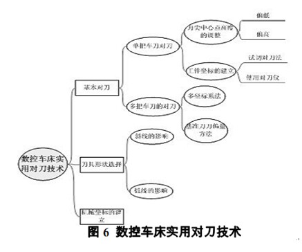 綜上, 本文論述的實用數控車床實用對刀技術能有效地提高零件的加工精度, 方便操作人員合理地選擇刀具, 對實際生產具有重義. 全文的知識框架如圖6所示: