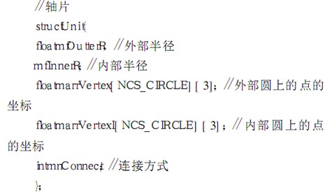 在進行三維動畫顯示之前,我們必須對軸的模型加以確定,因為車削時需要改變軸的尺寸,因此必須用一種方法來記錄軸上面的尺寸. 用下面的結構體來表達軸上的尺寸信息: