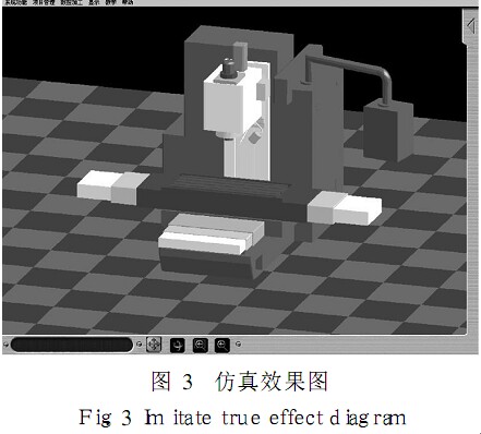 圖形顯示模塊主要負責刀具、夾具和主軸的繪制工作,而數據處理則是負責插補運算和刀具切削軸的計算,實現了數據和顯示分離,具有較好的模塊性. 仿真效果如圖 3所示.