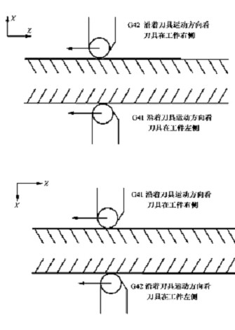 采用G41/G42編程,并且使用合理的刀位號進(jìn)行編程,這類編程在原有的程序中加入了G41/G42并且設(shè)置刀具半徑補(bǔ)償為R值,即可完成加工、注明G41,G42在G71/G72循環(huán)過程中不執(zhí)行,跳步執(zhí)行過程中才執(zhí)行〔)為了防i1一中途意外結(jié)束,開始時(shí)執(zhí)行G40,取消刀補(bǔ)、