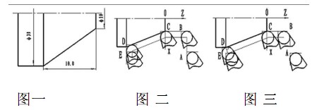 下面以加工如圖一所示錐形工件為例 ,分析使用外圓粗車循環(huán)指令 G71和精車循環(huán)指令 G70指令編程加工 ,刀尖半徑補償指令的設(shè)置方式及刀具軌跡。