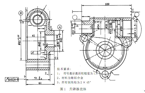 首先根據(jù)設計圖紙, 鑄造加工具有一定精度的升降器殼體半成品零件。