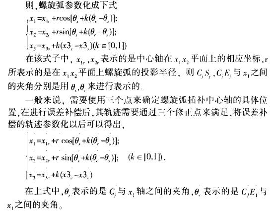 可以將螺旋插補(bǔ)運(yùn)動(dòng)所形成的軌跡看作是在平行于坐標(biāo)面的平面位置上實(shí)施圓弧插補(bǔ)運(yùn)動(dòng)的時(shí)候也在第二軸 方向 卜 進(jìn)行直線插補(bǔ)運(yùn)動(dòng),其中, 可以將圓弧插補(bǔ)當(dāng)成是直線插補(bǔ)暫時(shí)是零時(shí)的螺旋插補(bǔ),其并沒(méi)有失去一般性質(zhì), 設(shè)在平行于 !,, x 2的相應(yīng)平面內(nèi)進(jìn)行圓弧插補(bǔ),則直線插補(bǔ)的方向則為x, 方向 不難發(fā)現(xiàn), 當(dāng)實(shí)施刀具切削行為時(shí),其主要是沿著螺旋弧線進(jìn)行運(yùn)動(dòng)的則,螺旋弧參數(shù)化成下式