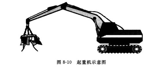 圖8-10是起重機示意圖。起重機的桿臂由一臺液壓缸驅(qū)動,該液壓缸所承受的是牽引負載,所以該液壓缸必須承受拉力。根據(jù)工作要求,液壓缸的活塞桿應該能夠停在任何工作位置,以確保重物能夠停在空中所需位置。回路中安裝溢流閥,為液壓缸提供背壓阻尼,以保證液壓缸能夠執(zhí)行可控制的伸出動作。