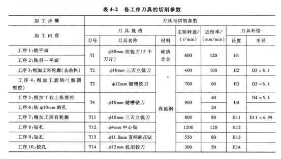 10)鉸孔加工。保證孔的直徑和深度,選用Φ12mm機用鉸刀。各工序及刀具的切削參數見表4_20