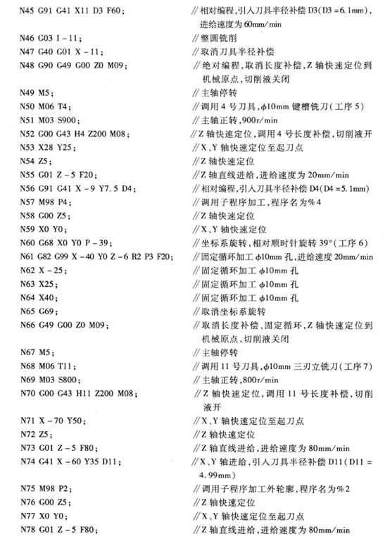 工序2一工序10由以下程序完成加工,正式加工前必須進行程序的檢查和校驗,并進行首件試切,確認無誤后自動加工。