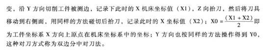 3)在手輪方式下低速移動銑刀,直到銑刀切削刃輕微接觸工件側表面。保持X坐標不