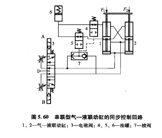 5. 2利用氣一液聯(lián)動(dòng)缸的同步控制回路