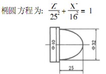 任務(wù) 2 :編寫下圖不完整半橢圓的加工程序, 毛 坯為 5 40 @ 100的 45鋼,其余部分的程序省略。