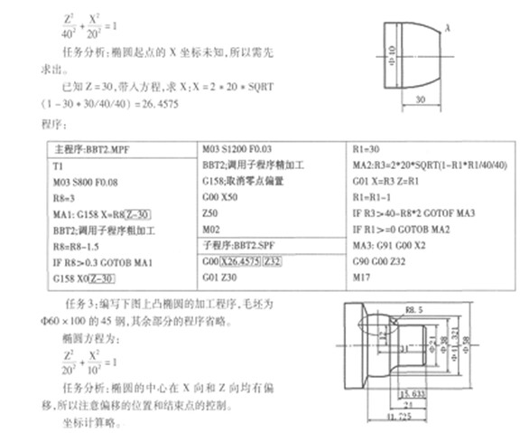 任務(wù) 1 : 編寫下圖半橢圓的加工程序, 毛坯為Φ40 *100的 45鋼, 其余部分的程序省略。